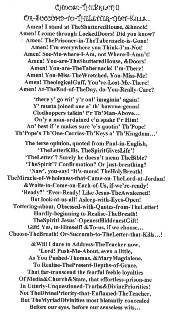 That poem came with a 6-point introduction which reflect back to us how modern society may camouflage the very dynamics which might repel us when we hear them clearly spelled out in pithy “Commandments’. So rather that set out these commandments in their bluntness, here also is Tom’s own introduction to them!