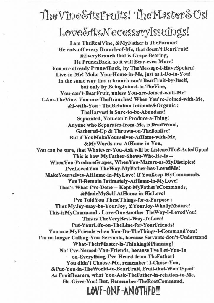 Gospel reading from John (Tom’s version)