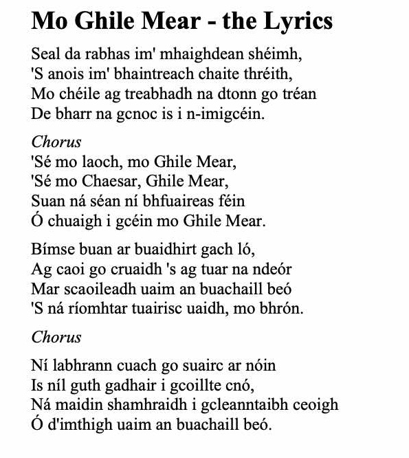Sé mo laoch, Mo Ghiolla Mears (lyrics)